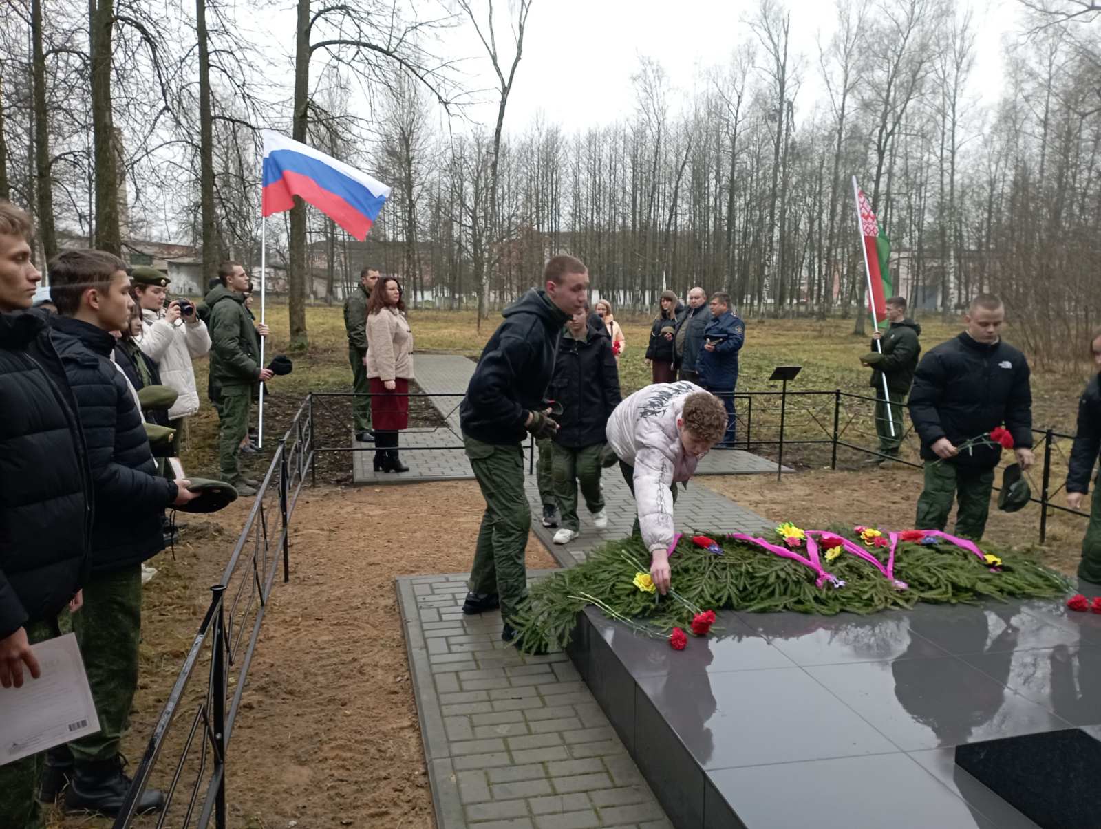 В завершение нашего братского дня члены клубов «За Родину!» и «Пламя» почтили память солдат, отдавших жизни за наше будущее. Возложение гирлянды к братской могиле на территории колледжа – это священный ритуал. Он связывает поколения и напоминает: наша сила – в единстве, а мир – в памяти.