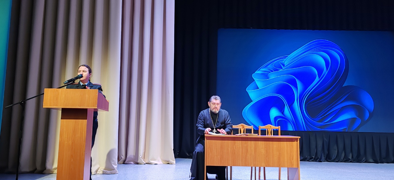 Перед учащимися выступили первый заместитель начальника отдела внутренних дел Климовичского РИК Демьянов И.В., начальник ИДН Агеева Н.А. и иерей Сергий.