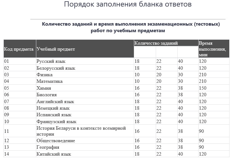Порядок заполнения бланка ответов